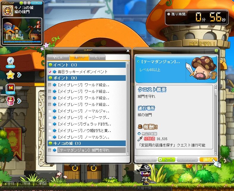 クエストマップでの制限時間は1分以内、時間経過で自動クリア。