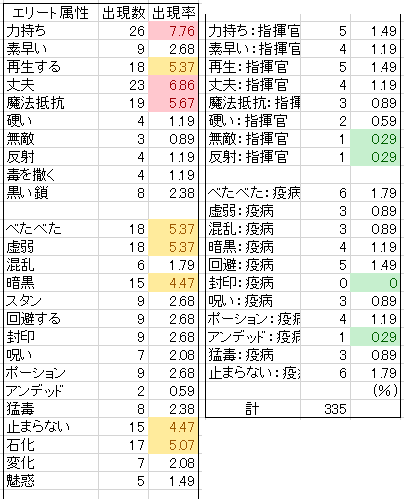 悶絶するので4月30日から出現したエリモン属性の統計とりはじめました。
