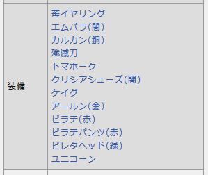 とりあえず先に、通常ワールドや装備制作では手に入らず十字旅団内でドロップを確認したもの。