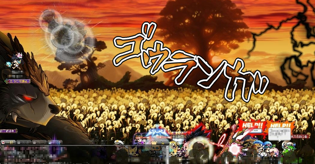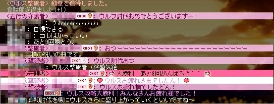 討伐後のチャット欄のようすです。お祝いムード。