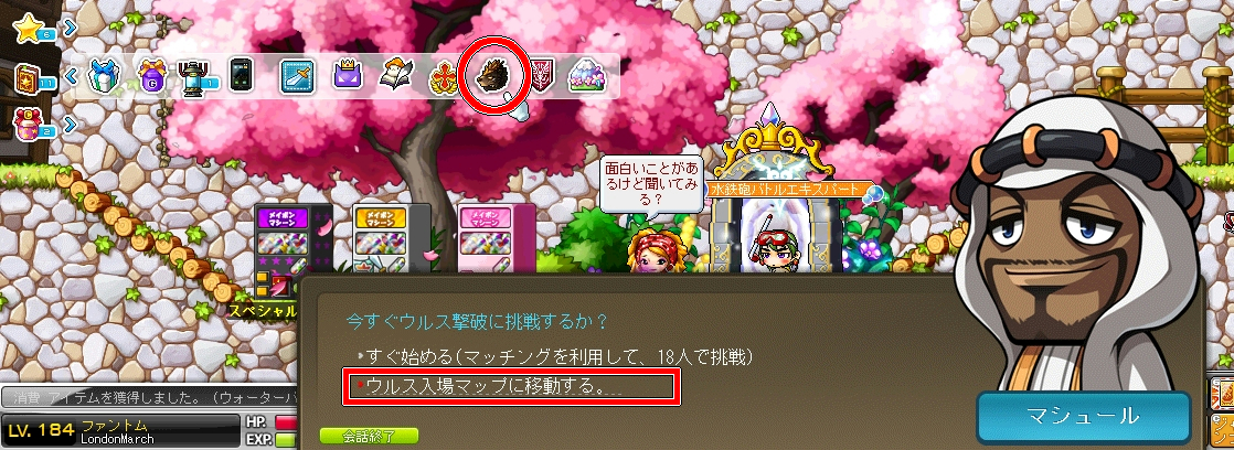 ウルス待機マップへ入場するには本アイコンの中からウルスを選択するか、
