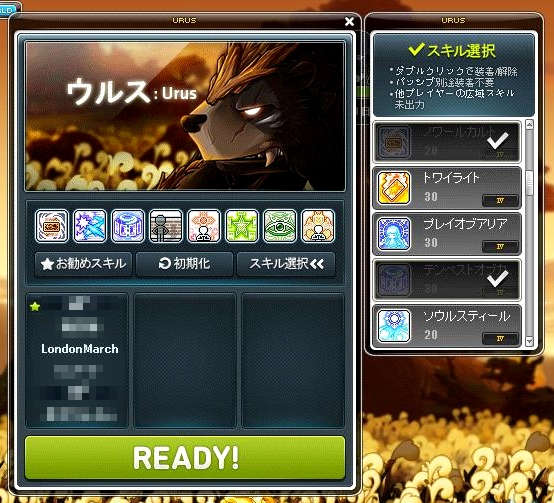 準備ができたらREADYボタンを押します。一度READYを押したらスキルの変更はできません。